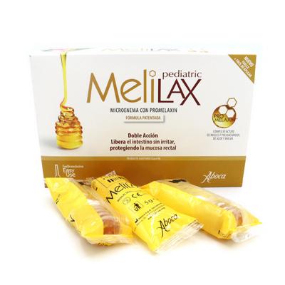 MeliLax Pediatric aúna una acción evacuante con una acción protectora y en consecuencia lenitiva de la mucosa rectal. La doble acción de MeliLax se obtiene gracias a PROMELAXIN, un complejo de mieles de néctar y de mielada cuidadosamente seleccionadas y elaboradas en función de su contenido en monosacáridos, polisacáridos y melanoidinas, enriquecido con la fracción polisacarídica del Aloe y la Malva.